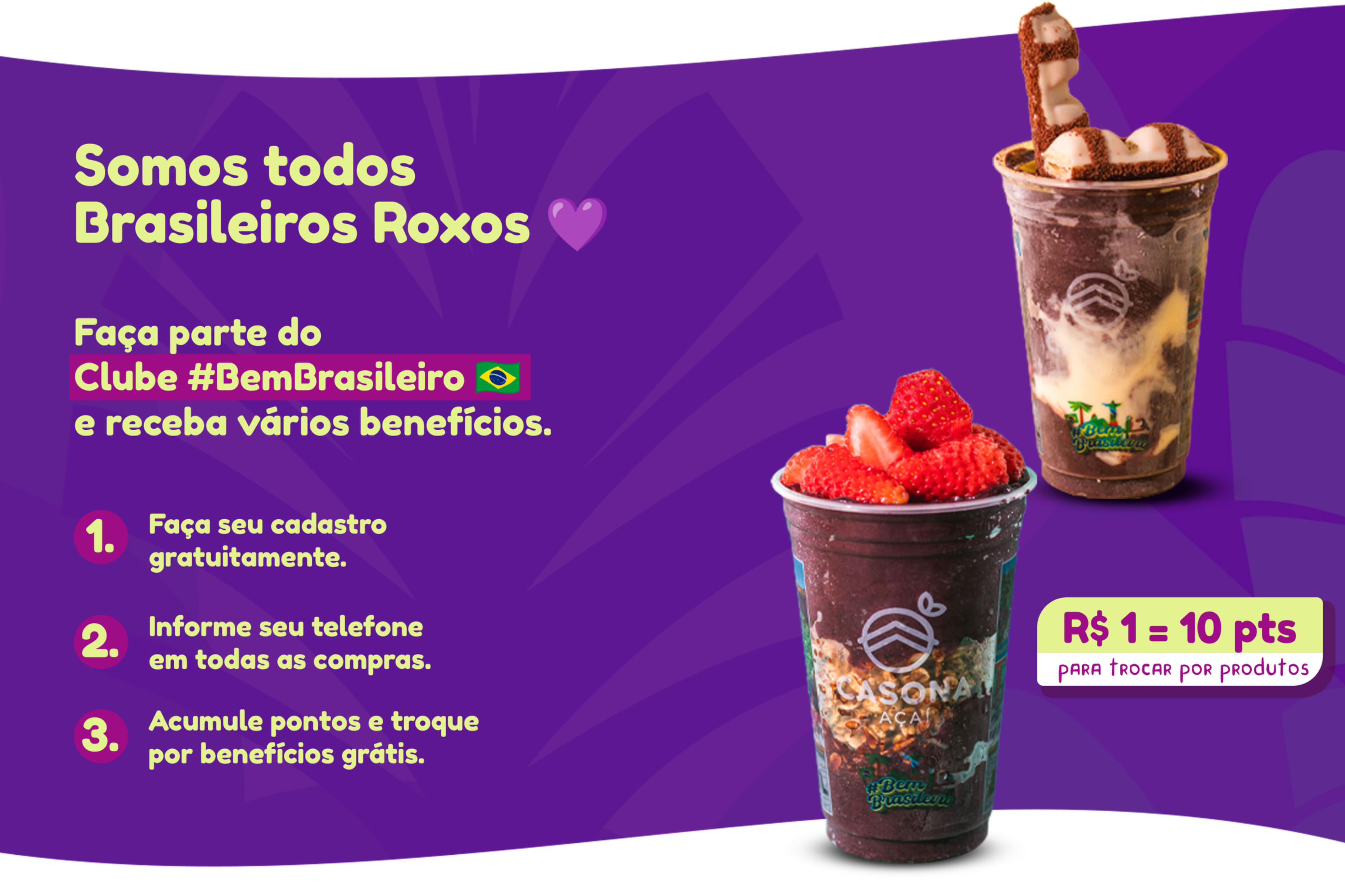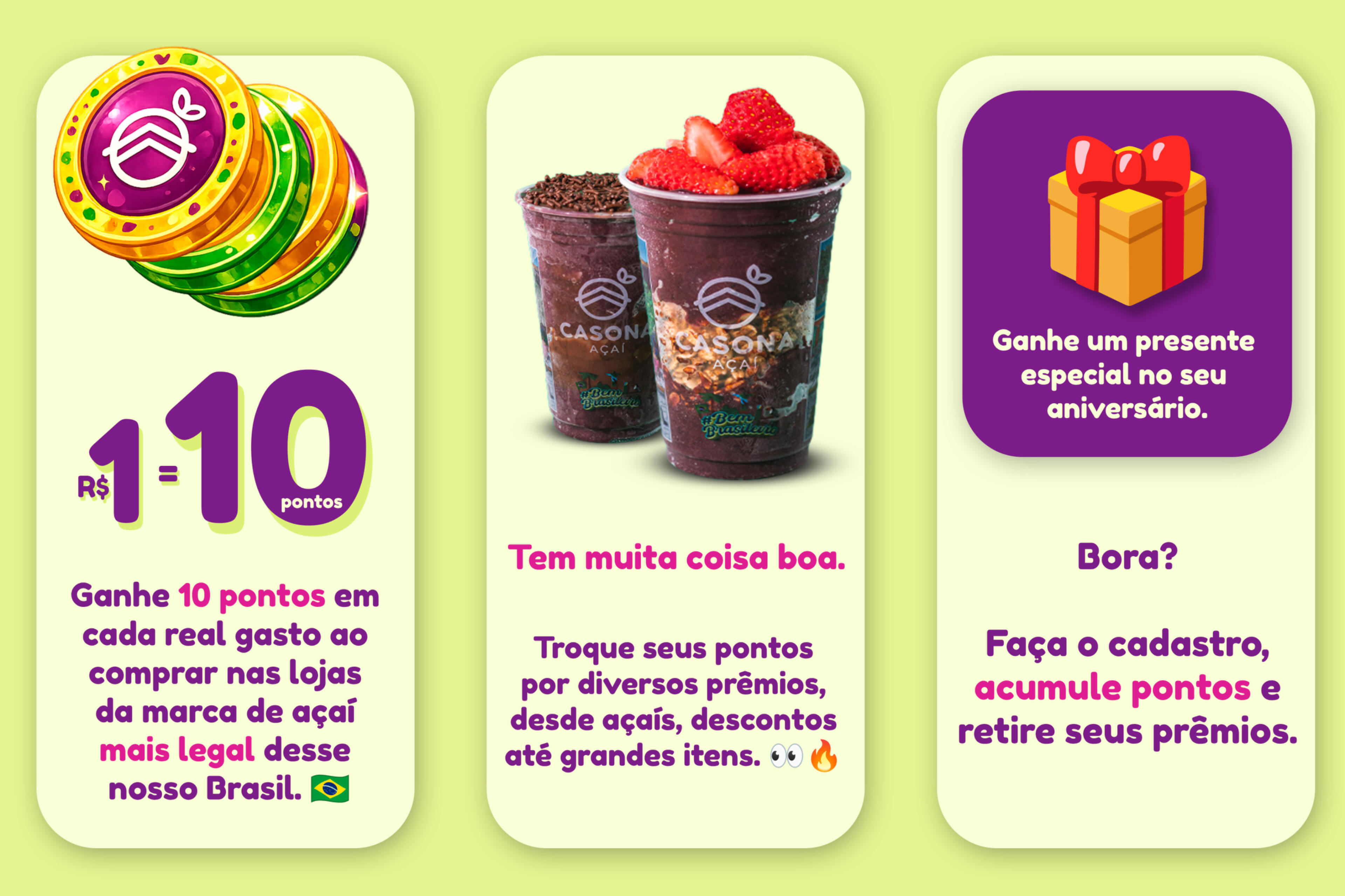 Você pode acumular pontos em mais de 30 lojas do Casona Açaí® espalhadas por aí.